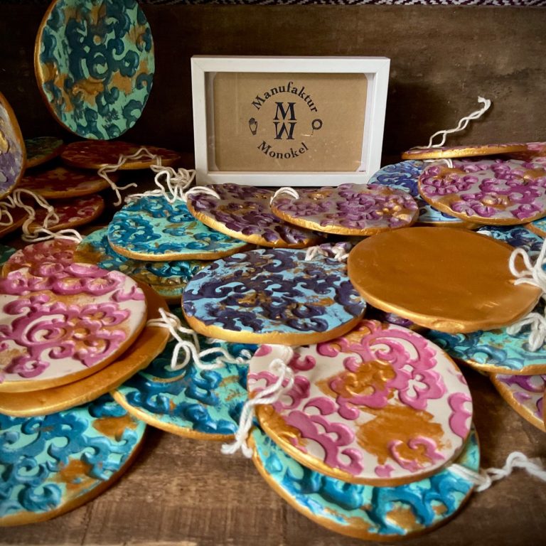 Von Tonklumpen bis zum fertigen Anhäger, jedes Stück ist in liebevoller Handarbeit entstanden. Daher ist kein Anhänger wie der Andere, jedes Stück ist ein Unikat.